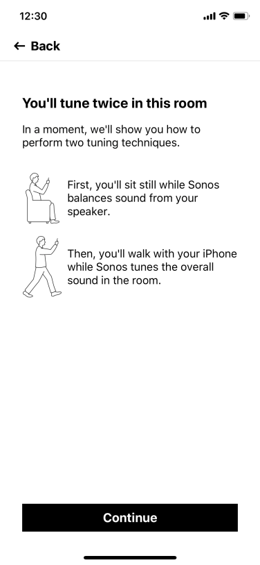 Comme les autres haut-parleurs de Sonos, l’application propose également de personnaliser le son du haut-parleur pour s’adapter à la pièce où se trouve le Beam en utilisant la fonctionnalité d’étalonnage Trueplay de l’entreprise. Cette étape supplémentaire lors de la configuration prend quelques minutes et nécessite de se déplacer dans la pièce en agitant un appareil iOS pour évaluer la façon dont le son est influencé par les murs, les meubles et autres surfaces environnantes.